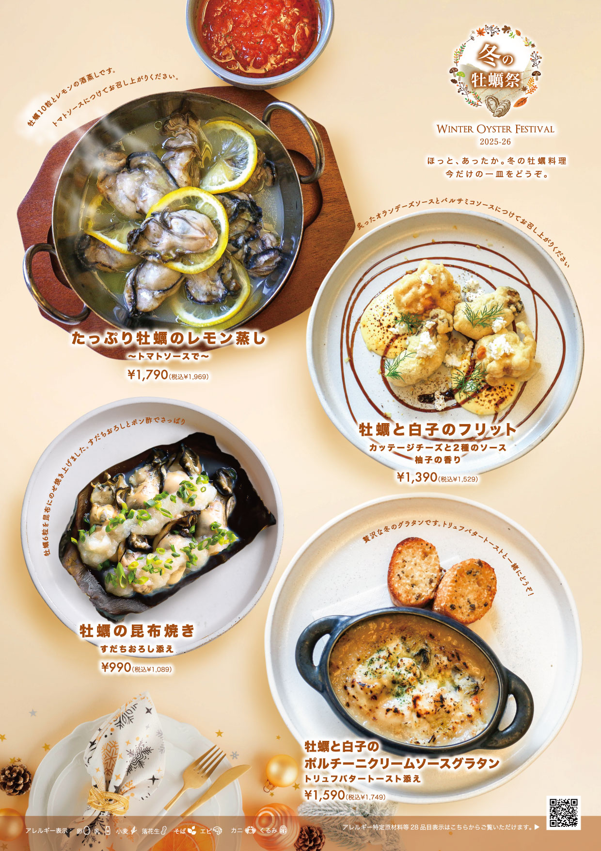 ※15:00~17:00は生牡蠣とドリンクのみの提供