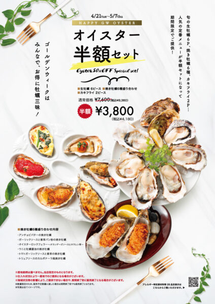 ゴールデンウィークはぜひ皆さまで、お得に牡蠣三昧をお楽しみください。